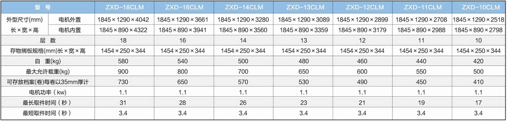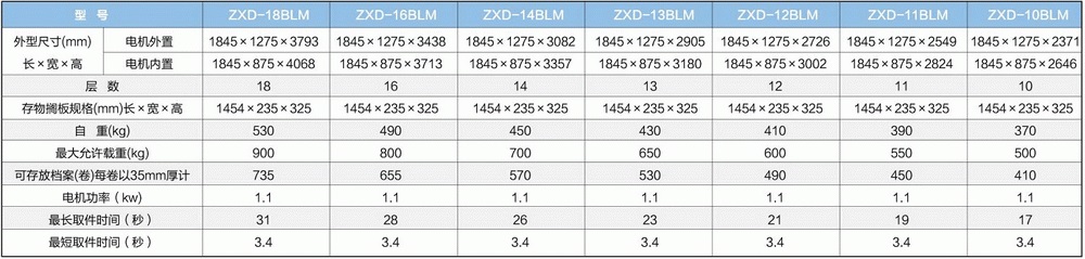 聯(lián)網(wǎng)上下電動門自動選層檔案柜主要技術(shù)參數(shù)(A4紙型)
